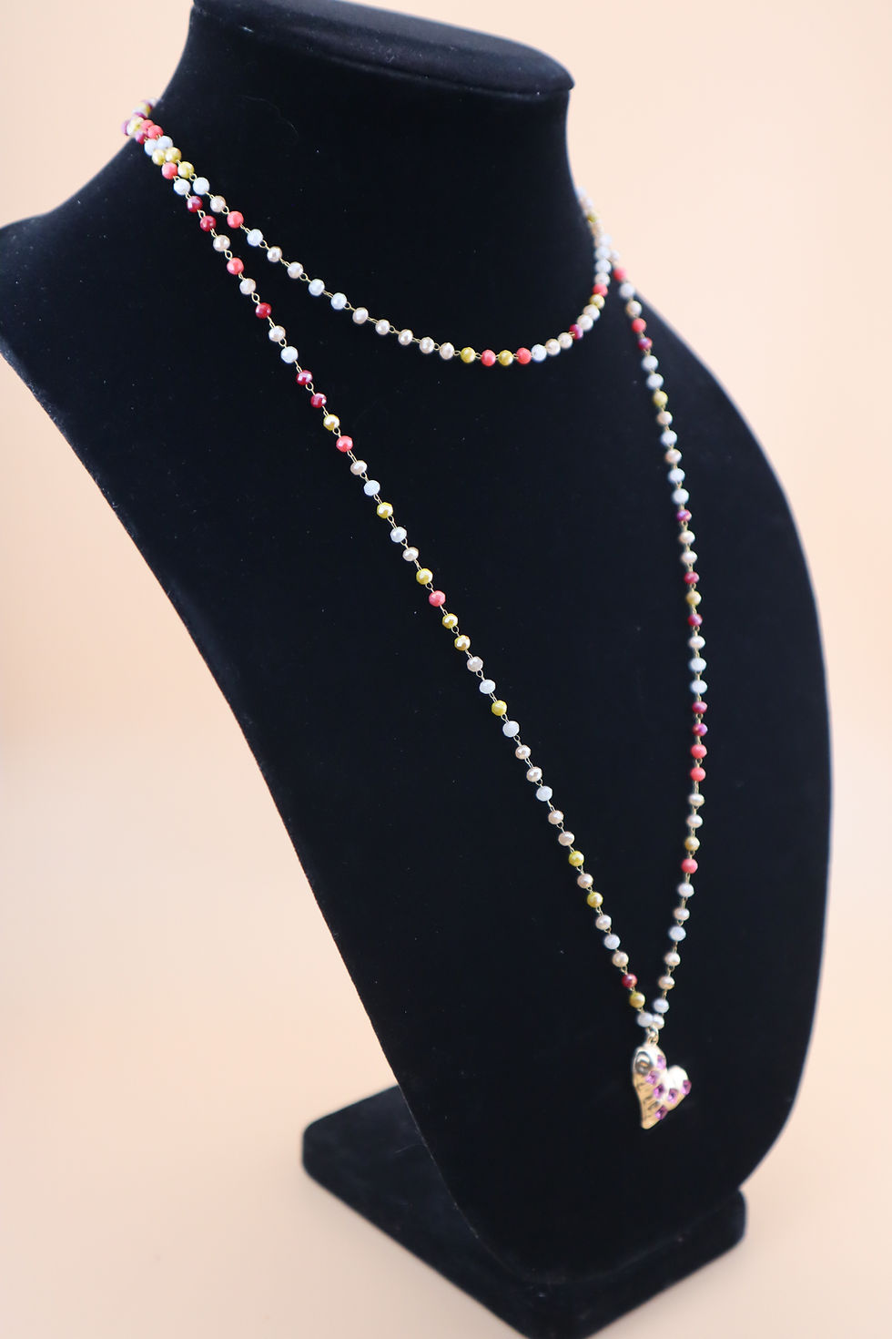 A sleek 18-inch necklace made with black crystals and accented with delicate charms. This piece feels modern and stylish, perfect for adding a bold touch to everyday outfits or evening looks.